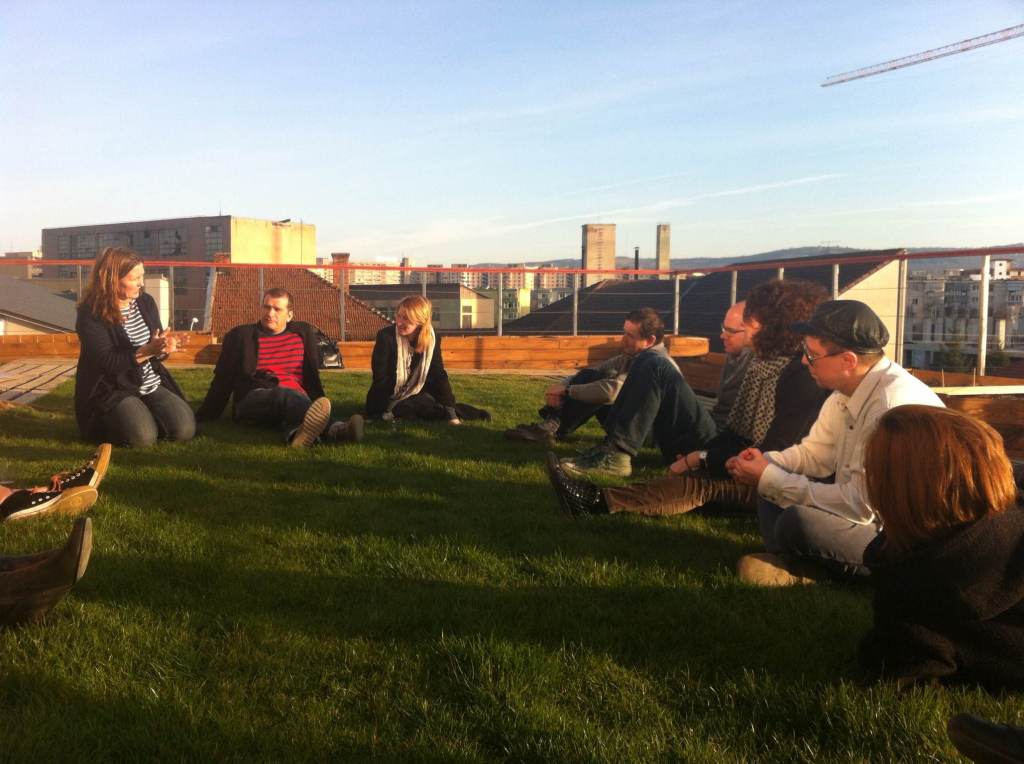 On the last day of the Cluj event the workshop opened up for the symposium attendees and wider public and presented and invited them for participation in a series of playful acting exercises – a short introduction into community-building actions. A Forum-theatre event led by Lilla Proics (Budapest) closed the evening: an introduction to participatory culture to the audience, this time raising the question: Should theatre professionals be involved in cultural policy making?