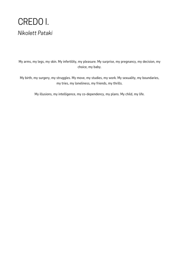 This is a short and semantically multi-layered play which tackles gender and power-issues in a situation set on the verge of the post Anthropocene world. In spite of the grim topic, the irony and the possible plot-twists will save us from immersing ourselves into dystopia.